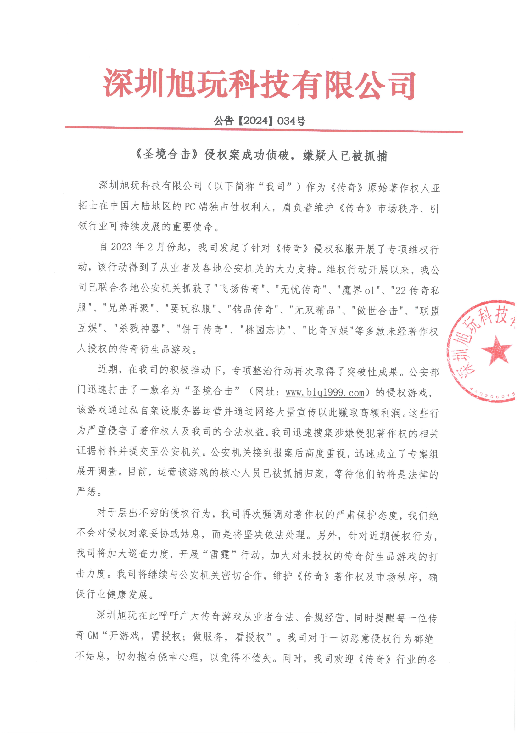 深圳旭玩在此呼吁廣大傳奇游戲從業(yè)者合法、合規(guī)經(jīng)營(yíng),同時(shí)提醒每一位傳奇GM“開游戲,需授權(quán);做服務(wù),看授權(quán)”。我司對(duì)于一切惡意侵權(quán)行為都絕不姑息,切勿抱有僥幸心理,以免得不償失。同時(shí),我司歡迎《傳奇》行業(yè)的各位同仁與我司創(chuàng)建合作關(guān)系,保證合法經(jīng)營(yíng)、擴(kuò)大游戲市場(chǎng),共創(chuàng)《傳奇》輝煌!