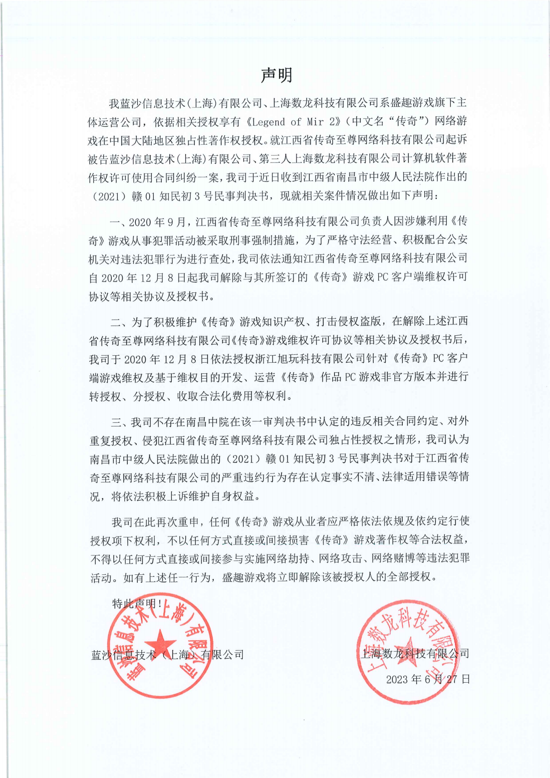 【轉載】上海數龍與藍沙信息的聯合聲明